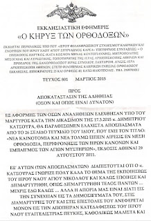 Μακάριος εκείνος όστις θέλει φυλάξη και κρατήση έως τέλους την αμώμητον και αγίαν ημών Ορθόδοξον Πίστιν, την Πίστιν της Μιάς του Χριστού και Μητρός ημών Αγίας Καθολικής και Αποστολικής Εκκλησίας, και υπομείνει τας διαφόρους θλίψεις, φυλακάς ή και εξορίας και λοιπάς κακώσεις. Ο τοιούτος θέλει στεφανωθή και συναριθμηθή μετά των Ομολογητών και Μαρτύρων. ( Βρεσθένης Ματθαίος νουθετική επιστολή 1936) ΟΙ ΑΝΑΡΤΗΣΕΙΣ ΣΤΟ ΙΣΤΟΛΟΓΙΟ ΓΙΝΟΝΤΑΙ ΜΕ ΤΗΝ ΕΥΘΥΝΗ ΤΟΥ ΔΙΑΧΕΙΡΙΣΤΟΥ.